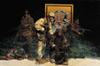This print displays a depiction of men from the Special Forces from key points in the organization's history. Each Green Beret in the picture represents a specific era of proud service in Special Forces history. Each uniform is authentic, and the equipment displayed is historically accurate. The picture contains representations of World War II, Vietnam, Afghanistan, and the Philippines. While painstaking care was taken to ensure the historical accuracy of each individual depicted, no painting could ever represent the myriad of uniforms and equipment that a Green Beret uses while serving as "quiet professionals". This painting is meant to capture the spirit of each era, and show the world what green berets may have looked like during each time period while continuing the legacy of excellence, as warrior-ambassadors throughout the world to defeat the enemies of freedom and to liberate the oppressed.