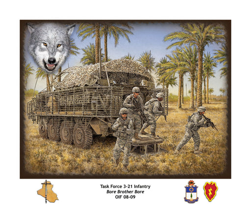 Task Force 3-21 InfantryBore Brother Bore OIF 08-09 Commemorative print16 by 19 inches overall Limited Edition of 300 - -Framed Print - Brass Cor...