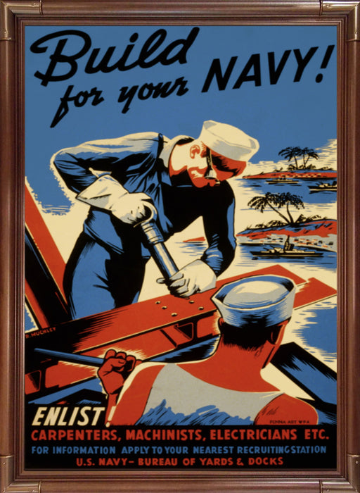 WWII Recruiting for the Seabees printed on canvas or paper as a Giclée print. 18.5"w x 27.5"h The First Seabees The first Seabees were not raw re...