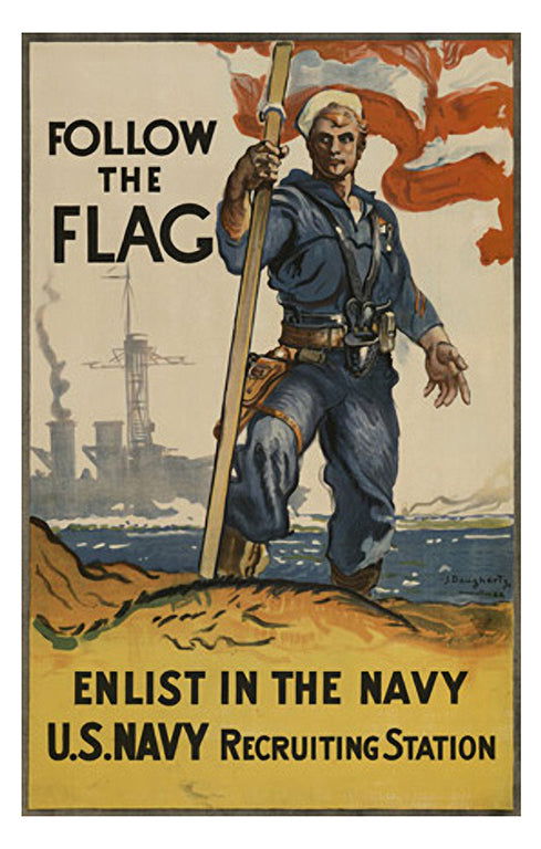Giclée Reproduction on Canvas or Paper "Follow The Flag - Enlist In The Navy - U.S. Navy Recruiting Station" Fully restored and ready to print as...