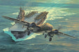 Specially commissioned to commemorate the 75th Anniversary of the Doolittle Tokyo Raid in support of the James H. Doolittle Education Fund, Anthony’s inspirational painting portrays the dramatic moment that Lt Col Jimmy Doolittle lifts his B-25 off the pitching deck of the USS Hornet. Having timed his launch to perfection he climbs steeply away, ready to adjust his compass bearing for a direct line to Tokyo. On the sodden deck behind him the crews of the remaining 15 aircraft, whose engines are warmed, ready and turning, will quickly follow their commanding officer into the murky sky.