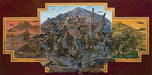 The painting depicts this rich history through the graphic illustration of three major conflicts the 504th Military Intelligence Brigade fought in: World War II, Operation Freedom’s Sentinel, and the Vietnam War. On the left, the 137th Signal Radio Intelligence Company can be seen intercepting German radio transmissions as they did in the battles of the Rhineland and the Ardennes. On the right is a glimpse into the 303rd Military Intelligence Battalion’s collection efforts in the Tet Counteroffensive in Vietnam. In the center, the 504th Military Intelligence Brigade’s current mission as the synergy of aerial and ground intelligence, framed by the Hindu Kush Mountains of Afghanistan, represents the unit’s continued fight for enduring freedom in the Middle East.