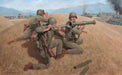 Committed to fight as infantry during the Battle of Yongsan (September 1950), PFC Leslie V. Burris and Private Robert E. Meyers of Alpha Company, 2nd Engineer Combat Battalion destroy the first of three enemy North Korean T-34 tanks. The actions of these 2nd Engineer soldiers allowed friendly forces to hold the ground until reinforcements arrived. PFC Burris would be wounded that same day and evacuated. Meyers was captured during the Battle of Kuni-ri (November 1950) and perished in a POW camp.